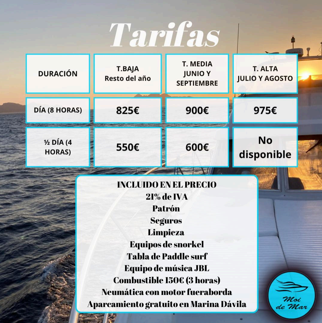 Diferentes planes para diferentes tipos de ofertas. ¡Pide precio por alquilar un yate en Vigo y las actividades que quieras!